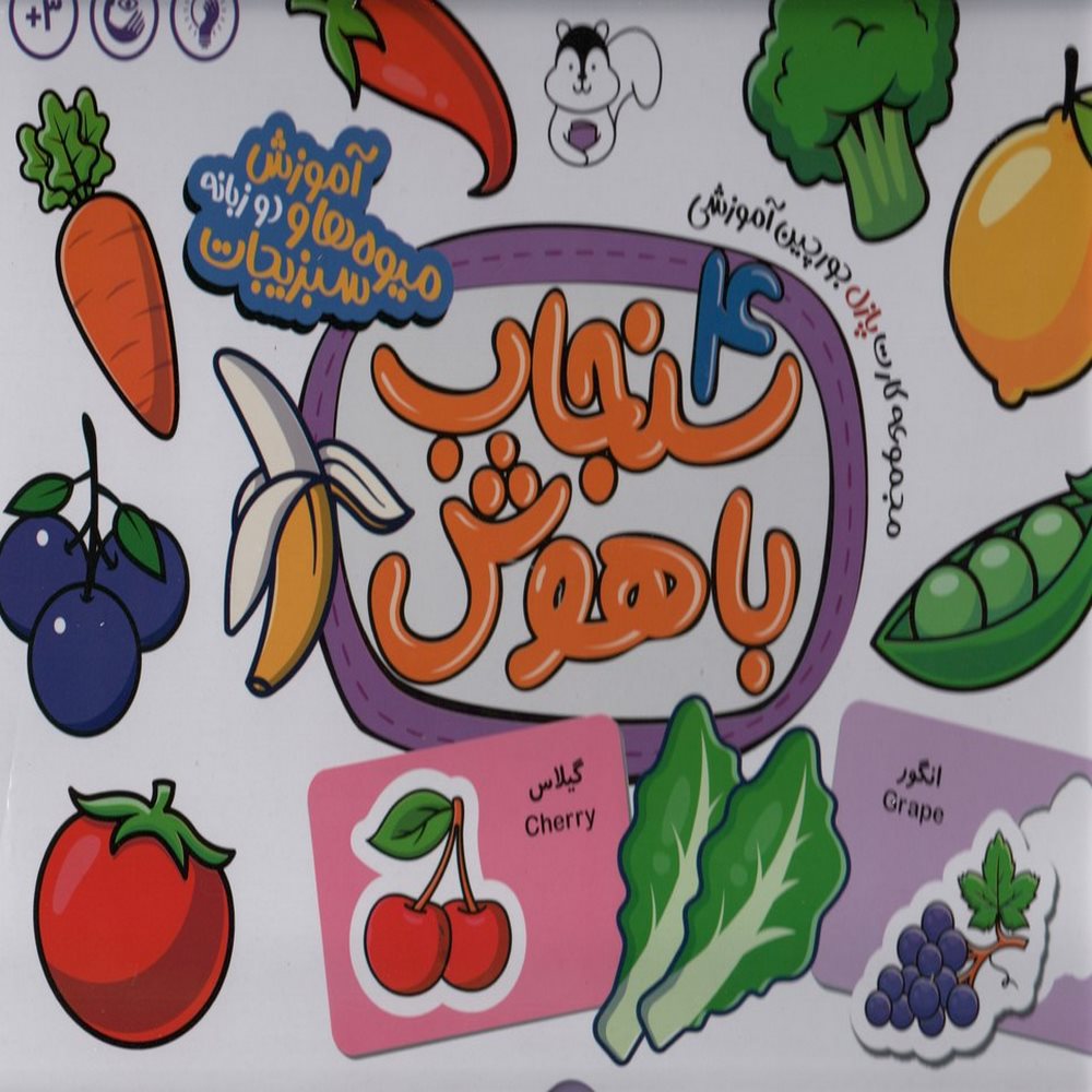 دربردارندۀ ۳۶ کارت ۱۵x۱۰ سانتیمتر میوه‌ها و سبزیجات برای برای رشد مغزی کودک