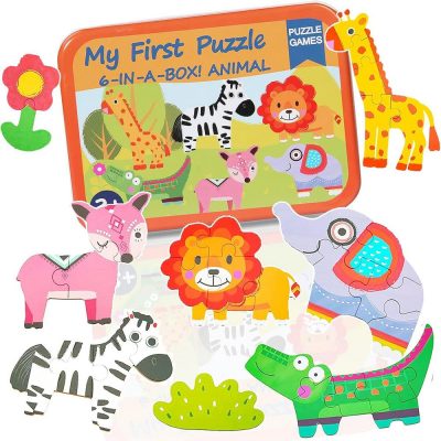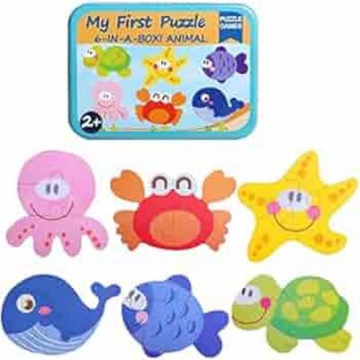 پازل 2 تکه چوبی قوطی فلزی طرح پرندگان